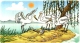 一天中午,三只白鹤在河里捉到了许多鱼。它们吃得饱饱的......